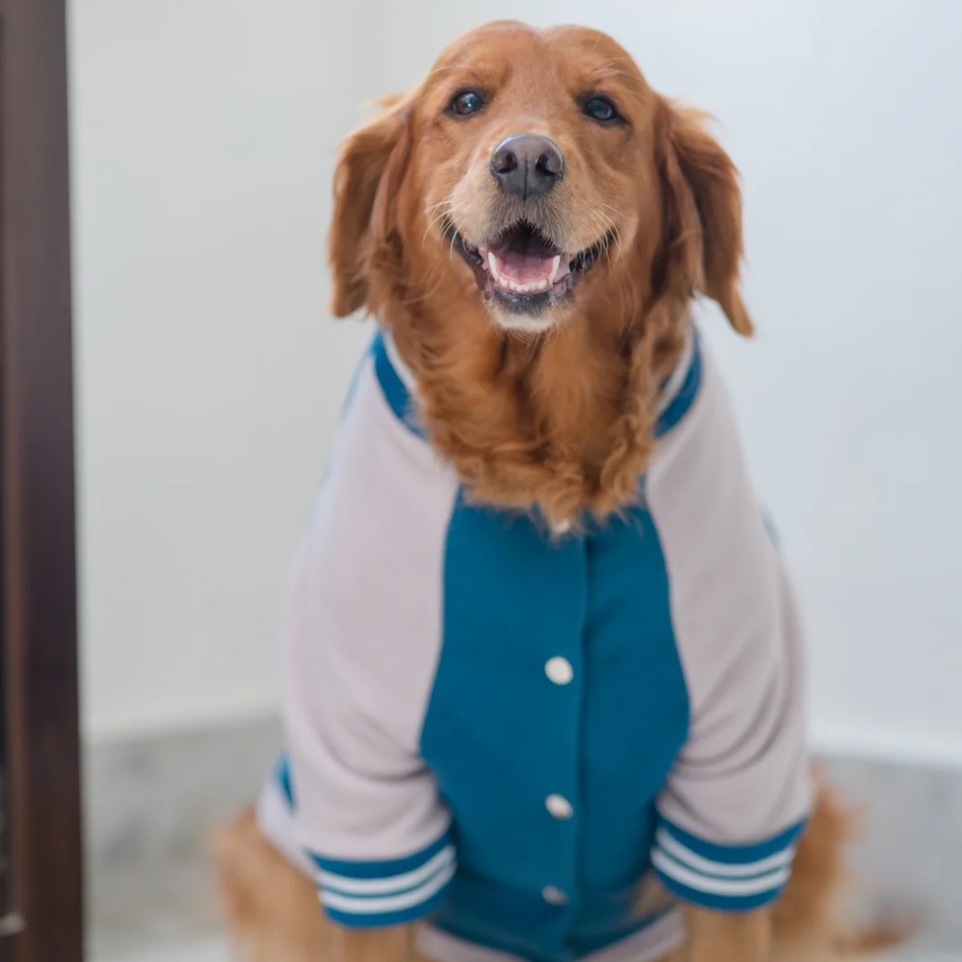 Blue Baseball Varsity Jacket for Dogs – Sporty, Stylish, and Cozy