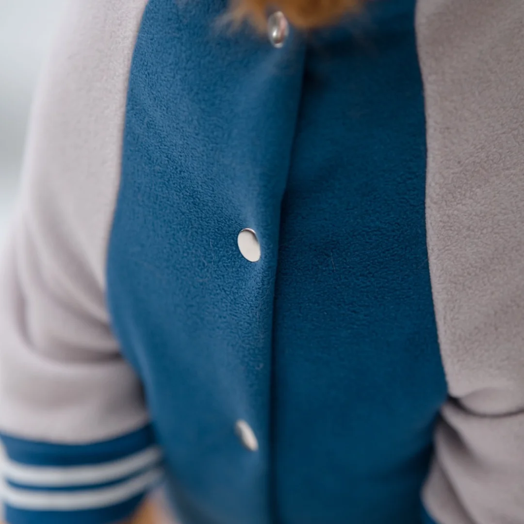 ✨ Sporty Baseball Varsity Design: Classic blue with striped trim for a timeless look.