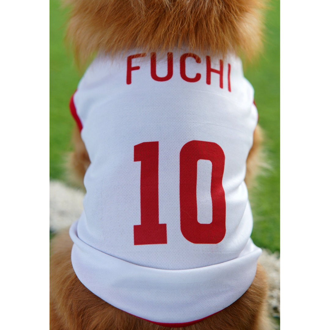Dress your pet in a custom jersey designed for both comfort and flair. Available in classic white and red, this jersey is soft, stylish, and ready for personalization—perfect for showcasing your pet’s name, favorite number, or your brand.
